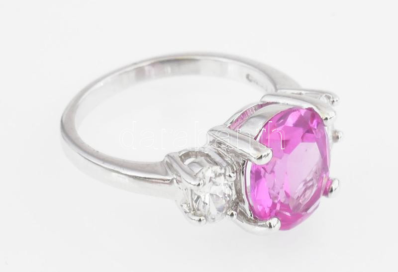 Ezüst(Ag) gyűrű rózsaszín kővel, jelzett, méret: 49, bruttó: 3,7 g