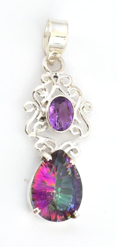 Ezüst(Ag) medál színes kövekkel, jelzett, 4,5×1,5 cm, bruttó: 5,1 g