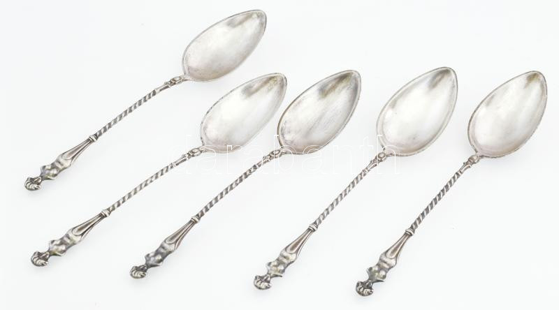 Ezüst(Ag) mokkás kanál, 5 db, jelzett, h: 11 cm, nettó: 50,6 g