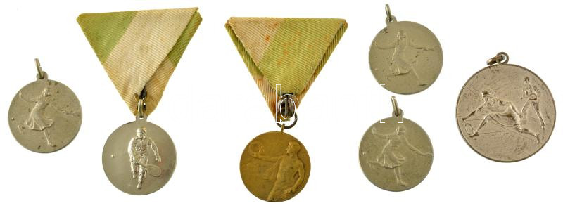 1928-1930. 6db-os bronz tenisz díjéremtétel, ebből 5db ezüstözött, 2db pedig mellszalagon (28mm, 30mm és 39mm) T:AU-VF