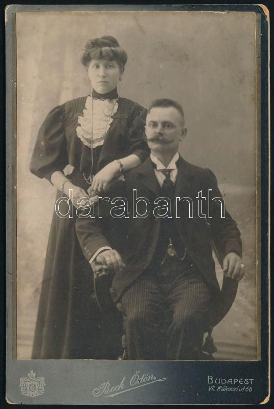 cca 1910 Házaspár portréja, keményhátú fotó Beck Ödön budapesti műterm...