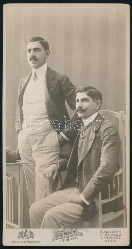 cca 1910 Két férfi portréja, keményhátú fotó a Dunky fivérek (Kolozsvá...