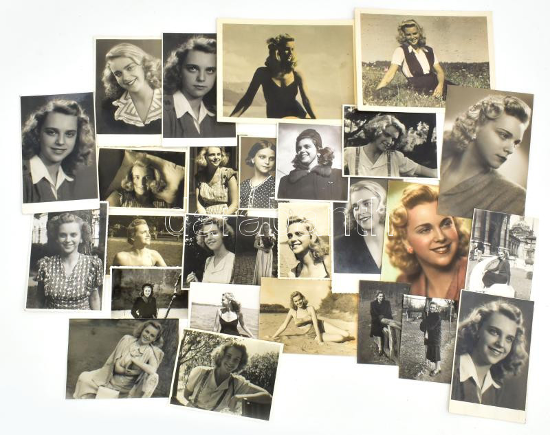 cca 1940-1950 Szép szőke hölgy fotói, össz. 30 db fotó és fotólap, a h...