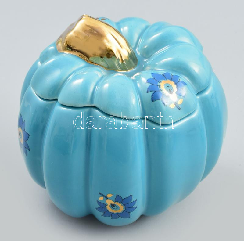 Német türkizkék tök alakú cukortartó. Jelzett, hibátlan, m: 12,5 cm