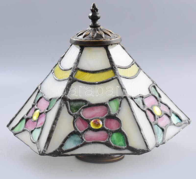 Ólomüveg mennyezeti lámpabúra, hibátlan, d: 28 cm, m: 23 cm