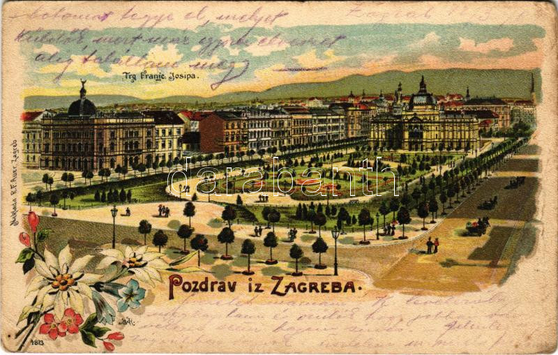 1902 Zagreb, Zágráb; Trg Franje Josipa. R.F. Auer Art Nouveau, floral, litho (EK)