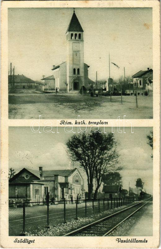 1940 Sződliget, Római katolikus templom, Országzászló, Sződ-Sződliget ... https://www.darabanth.com/en/455-Online-auction/455.0/Postcards/Hungary~1500005/1940-Szodliget-Romai-katolikus-templom-Orszagzaszlo-Szod-Szodliget-vasutallomas-erkezo~II3034712