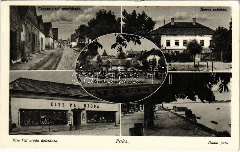 Paks, Présházsor, Rókus kápolna, Dunakorzó és uszoda, Kiss Pál Utóda üzlete és saját kiadása (EK)