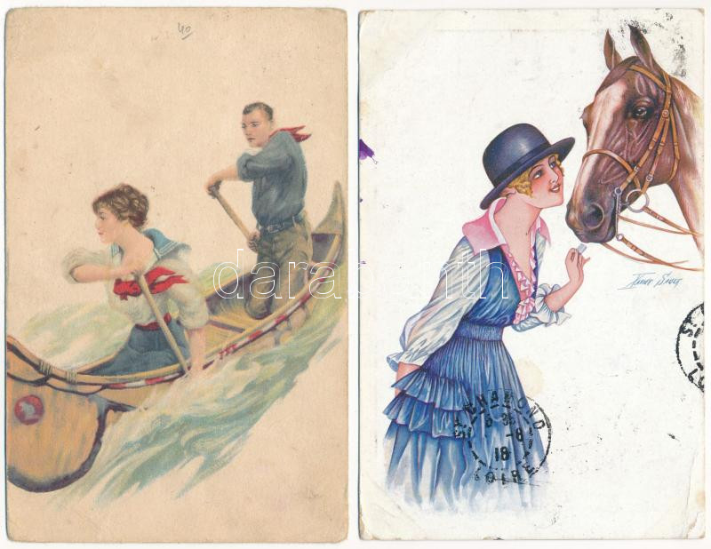 30 db RÉGI szignált művész képeslap, vegyes minőségben / 30 pre-1945 artist signed motive postcards in mixed quality