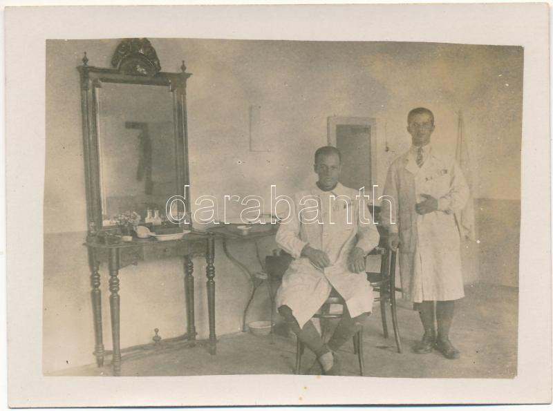 1929 Sepsiszentgyörgy, Sfantu Gheorghe; Scoala de Infanterie, Frizeria / Gyalogsági iskola, fodrászat / Romanian military infantry school, hairdressers. photo (non PC)