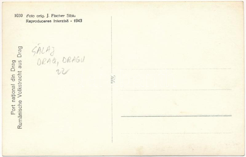 Drág, Dragu; Port national / Rumänische Volkstracht / Román népviselet... https://www.darabanth.com/en/455-Online-auction/455.0/Postcards/Transylvania~1500006/Drag-Dragu-Port-national-Rumanische-Volkstracht-Roman-nepviselet-erdelyi-folklor-~II3033983