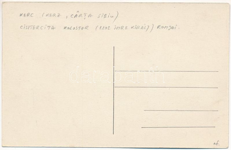 https://www.darabanth.com/en/455-Online-auction/455.0/Postcards/Transylvania~1500006/Kerc-Kerz-am-Alt-Kertz-Kierz-Carta-Szeben-Sibiu-Abteiruinen-Apatsagi-romok-abbey-ruins~II3038217