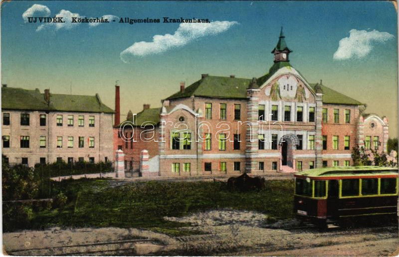 Újvidék, Novi Sad; Közkórház, villamos / Allgemeines Krankenhaus / hospital and tram (EK)