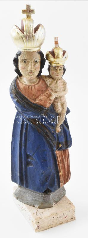 A pribrami Madonna mása. XIX. sz., második fele, faragott és festett fa, kopással, m: 32 cm