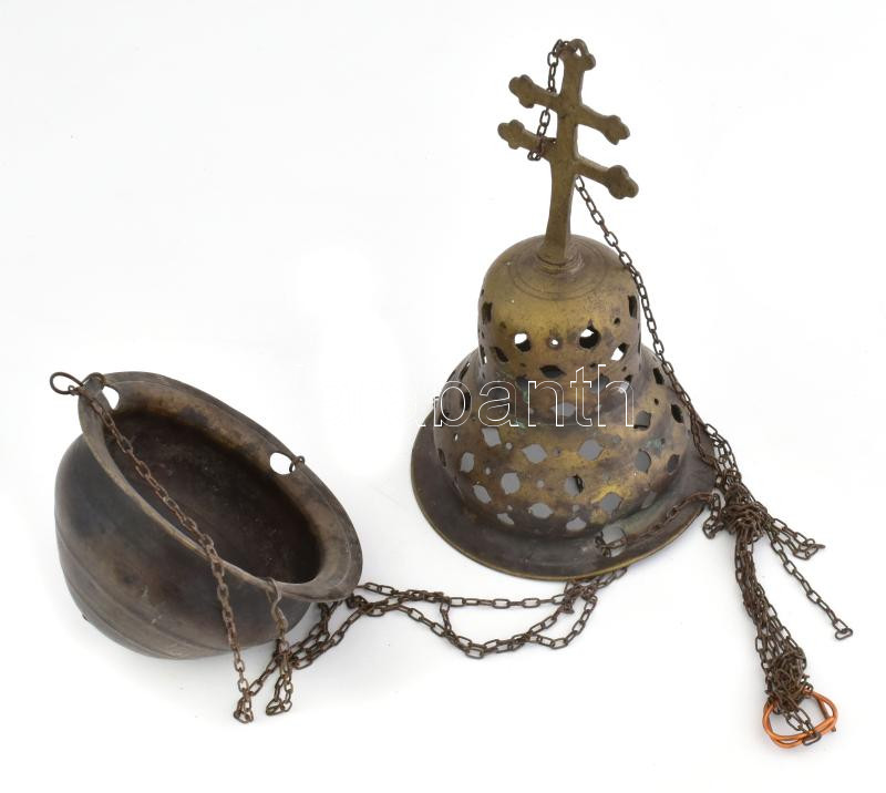Antik ortodox egyházi tömjénfüstölő, kopással, korának megfelelő állap...