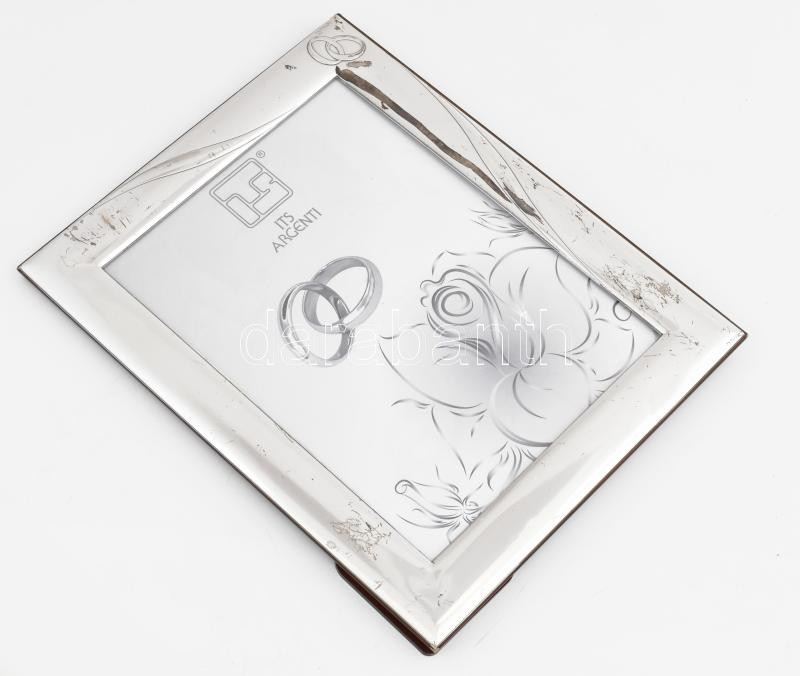 Ezüst (Ag) rátétes képkeret, jelzett, kopásnyomokkal, belső méret: 24×...