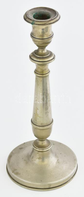 Antik alpakka gyertyatartó, kopással, m: 25 cm