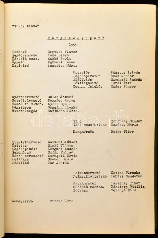 1959 Szabó Magda: Vörös tinta. Forgatókönyv. Dramaturg: Lukács Antal. ... https://www.darabanth.com/en/456-Online-auction/456.0/Art-and-other-collectibles/Historical-documents-manuscripts~500021/1959-Szabo-Magda-Voros-tinta-Forgatokonyv-Dramaturg-Lukacs-Antal-Rendezo-Gertler-Viktor~II3048478