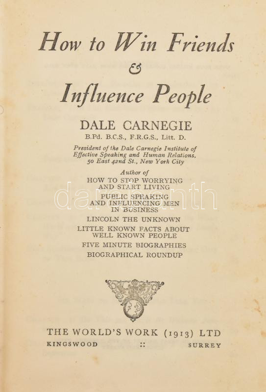 Dale Carnegie: How to Win Friends & Influence People. Kingswood, 1913....
