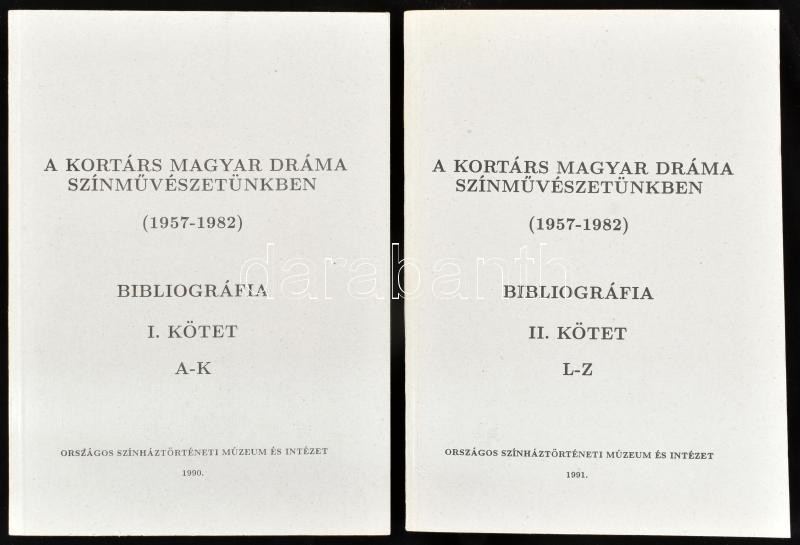 Description: A kortárs magyar dráma színművészetünkben (1957-1982.) Bibliográfia. I-II. köt. A bibliográfiát összeáll., szerk. és a mutatót készítette: Némethné Ferstek Ilona. Bp.,1990,Országos Színháztörténeti Múzeum és Intézet. Kiadói papírkötések.