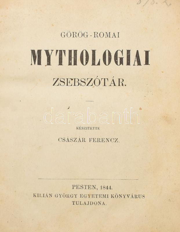 https://www.darabanth.com/en/456-Online-auction/456.0/Books/Books-Other-rarities~1000034/Csaszar-Ferenc-Gorog-romai-mythologiai-zsebszotar-Bp-1844-Trattner-Karolyi-ny-XVplus526-pplus18~II3040939
