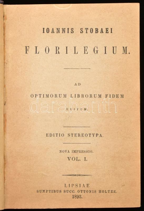 Ioannis Stobaei [Stobaeus]: Florilegium. I-III. köt. Lipsiae, 1893, Su... https://www.darabanth.com/en/456-Online-auction/456.0/Books/Books-Other-rarities~1000034/Ioannis-Stobaei-Stobaeus-Florilegium-I-III-kot-Lipsiae-1893-Sumptibus-Succ-Ottonis~II3044015