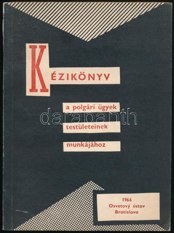 Kézikönyv a polgári ügyek testületeinek munkájához. Összeáll.: Dr. Koczka István. Bratislava, 1966, Osvetovy ústav. Kiadói papírkötés.