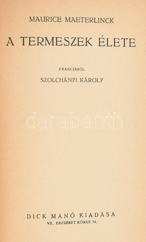 https://www.darabanth.com/en/456-Online-auction/456.0/Books/Books-Other-rarities~1000034/Maurice-Maeterlinck-A-termeszek-elete-Ford-Szolchanyi-Karoly-Bp-en-Dick-Mano-175plus1-p~II3050003