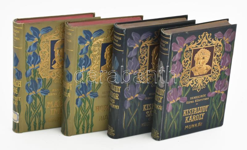 Remekírók 4 kötete: Kisfaludy Sándor I-II, Homéros Iliásza, Madách Imre válogatott munkái. Aranyozott, festett egészvászon kötésben, kis kopással