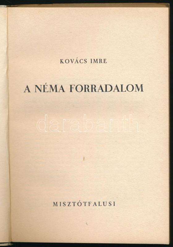 Kovács Imre: A néma forradalom. Bp., 1947, Misztótfalusi. Második kiad...