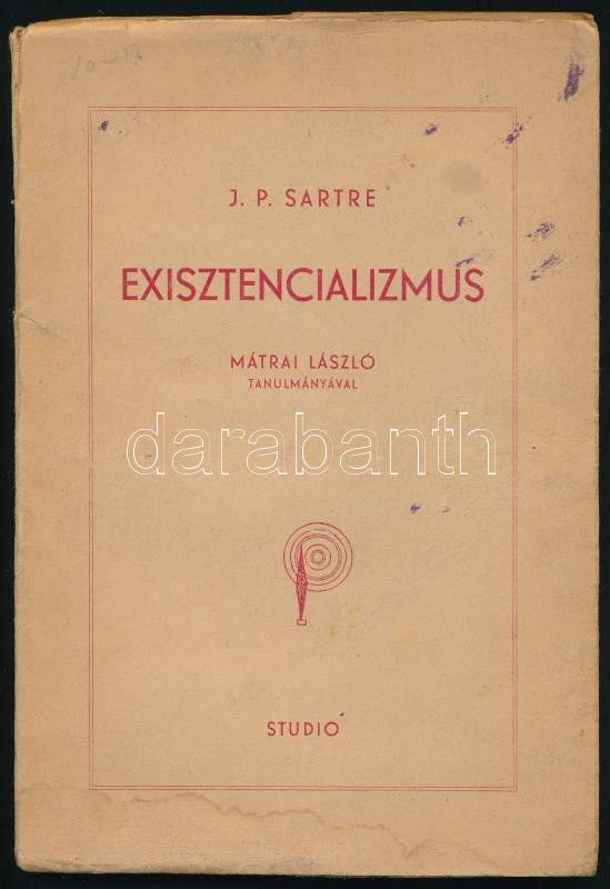 Sartre, Jean-Paul: Exisztencializmus. Ford.: Csatlós János. Mátrai Lás... https://www.darabanth.com/en/456-Online-auction/456.0/Books/Books-Social-sciences~1000025/Sartre-Jean-Paul-Exisztencializmus-Ford-Csatlos-Janos-Matrai-Laszlo-tanulmanyaval-Bp-~II3043951