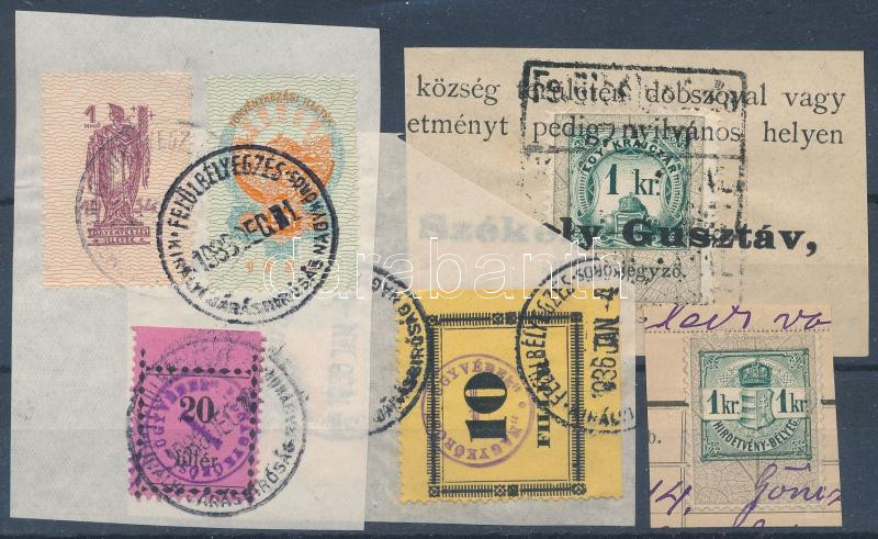 Törvénykezési és hirdetményilleték-bélyegek 4 db kivágáson