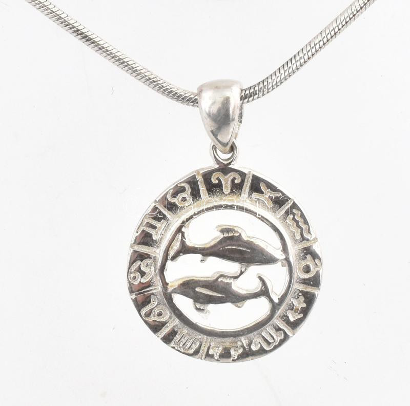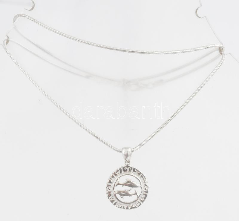 Ezüst(Ag) kígyó nyaklánc "Halak" medállal, jelzett, h: 45-50 cm, d: 1,...