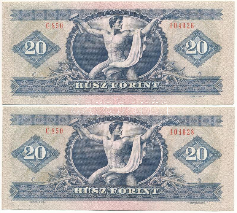 https://www.darabanth.com/en/456-Online-auction/456.0/Numismatics/Hungarian-Banknotes~2000008/1975-20Ft-2x-egyugrasos-sorszamkovetok-C-850-104026-C-850-104028-latvanyos-nyomdai~II3048583