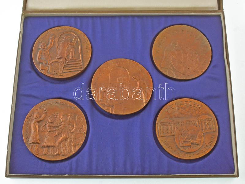 Nagy István János (1938-) DN "A legszebb magyar bordal költője - Csokonai (Vitéz Mihály)" bronz plakett sor eredeti dísztokban (5xklf) (75mm/db) T:UNC