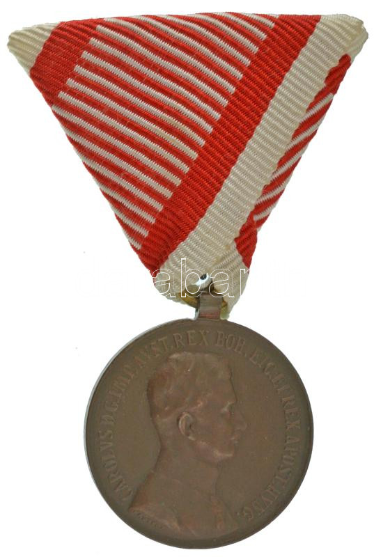 1917. "Károly Bronz Vitézségi Érem" bronz kitüntetés modern mellszalag...