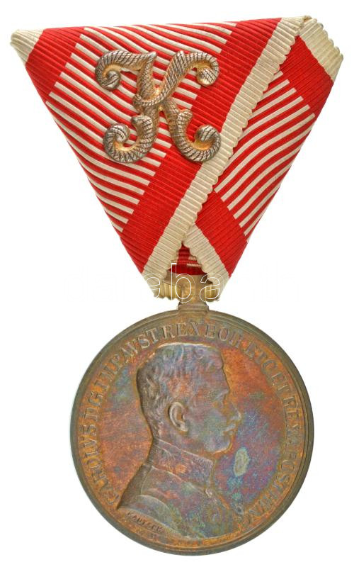 1917. "Tiszti Ezüst Vitézségi Érem " jelzett Ag kitüntetés, mellszalag... https://www.darabanth.com/en/456-Online-auction/456.0/Numismatics/Military~2000019/1917-Tiszti-Ezust-Vitezsegi-Erem-jelzett-Ag-kituntetes-mellszalaggal-rajta-kurziv-K-betu~II3041471