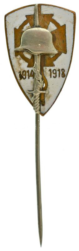 Description: ~1930. "1914-1918" zománcozott bronz kitűző, az Országos Frontharcos Szövetség jelvényképével, hátoldalán "Berán N. BPest Döbrentei u. 2." gyártói jelzéssel (16x25mm) T:XF