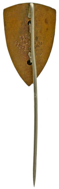 Hungary ~1930. "Hungarian Front Fighters Association" enamelled Br badge with vertical pin, and with "Berán N. BPest Döbrentei u. 2." maker's mark (16x25mm) C:XF
