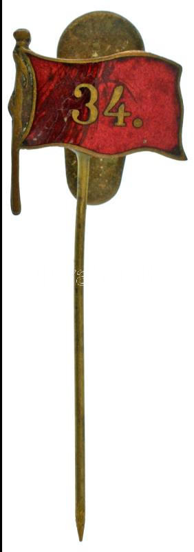 Osztrák-Magyar Monarchia ~1914. "34. sz. Császári és Királyi Gyalogezred" zománcozott bronz gomblyukjelvény hátoldalon "Boczán Károly BPest Baross u. 19." gyártói jelzéssel, utólag ráragasztott tűvel (17x18mm) T:XF zománchiba