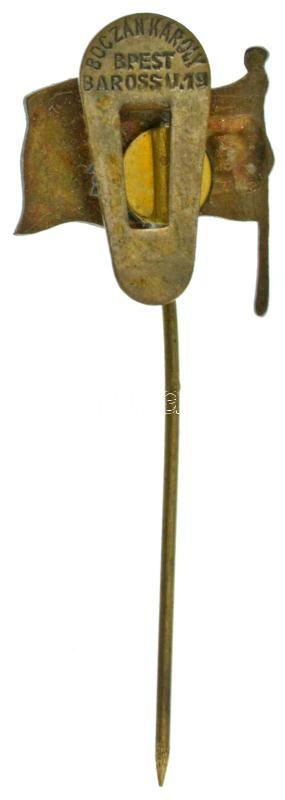 Austro-Hungarian Monarchy ~1914. "34th K.u.K. Infantry Regiment" enamelled bronze buttonhole badge with "Boczán Károly BPest Baross u. 19." maker's mark, with later glued pin (17x18mm) C:XF enamel error