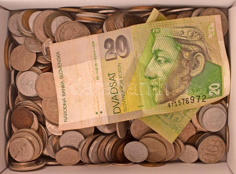 Vegyes külföldi érmetétel mintegy ~1,2kg súlyban, közte Szlovákia 1995... https://www.darabanth.com/en/456-Online-auction/456.0/Numismatics/Mixed-banknote-and-coin-lots~2000022/Vegyes-kulfoldi-ermetetel-mintegy-7E1-2kg-sulyban-kozte-Szlovakia-1995-20K-bankjegy-T-vegyes~II3049116