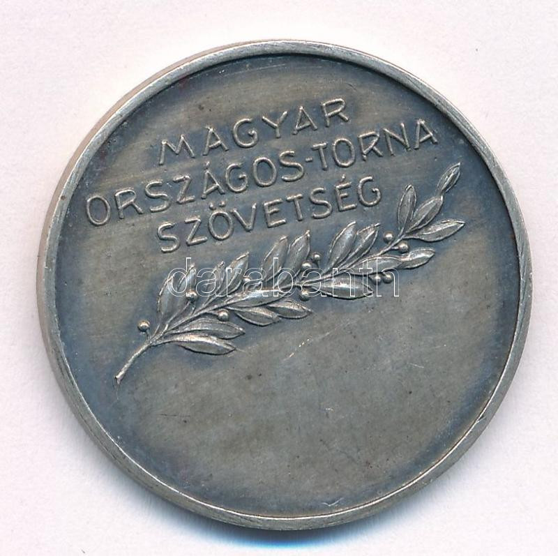 Description: Damkó József (1872-1955) / Exner Károly (1850-1919) DN "Magyar Országos Torna Szövetség" kétoldalas jelzett Ag sport emlékérem, "S.G.A." gyártói jelzéssel (11,35g/0.800/30mm) T:AU patina