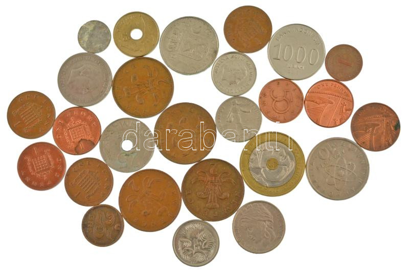 Description: 26db-os vegyes érmetétel, közte Nagy-Britannia, Indonézia, Dánia, Lettország stb. T:vegyes