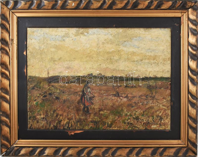Kotász Károly (1872-1941): Táj hölggyel. Olaj, karton, jelezve jobbra ...