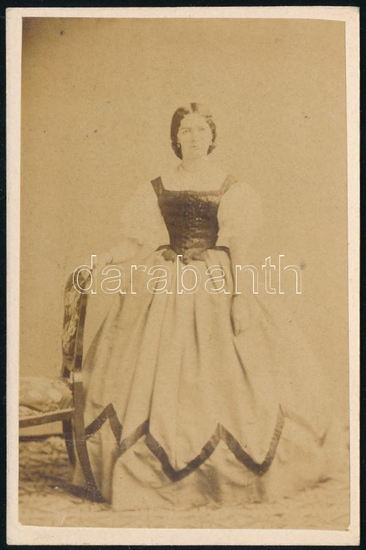 cca 1860 Hölgy egész alakos portréja, keményhátú fotó Skopáll József g...