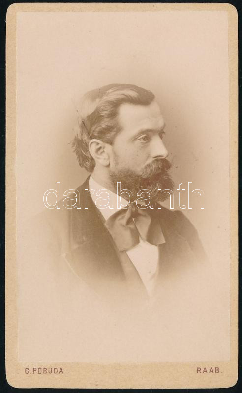 cca 1875 Férfiportré, keményhátú fotó Pobuda győri műterméből, 10,5×6,...