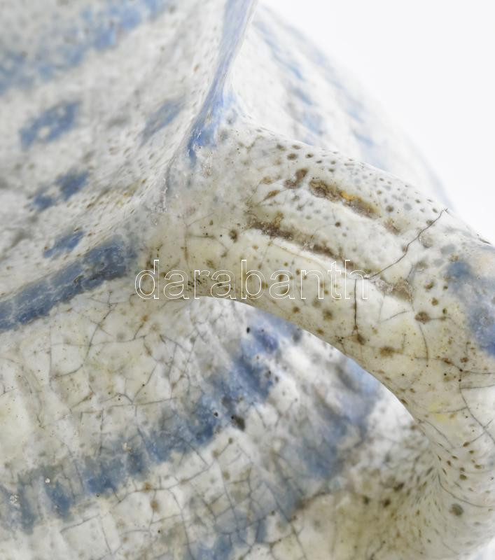 Gorka Géza (1894-1971): Szarvasos váza. Kézzel festett repesztett mázas kerámia, fülénél repedéssel, alján lepattanással. Jelzett, m: 20,5 cm