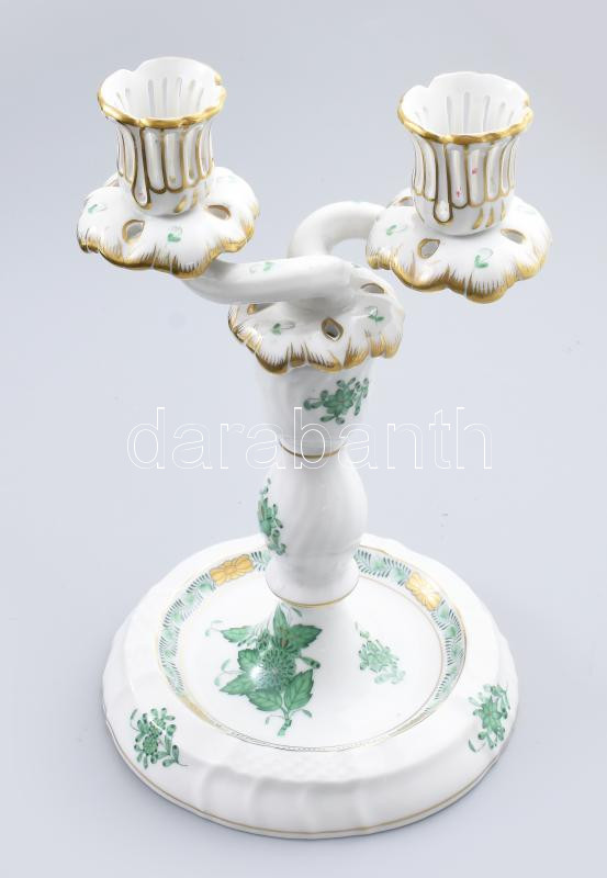 Herendi Apponyi mintás kétágú gyertyatartó. Kétrészes. Jelzett, hibátl...
