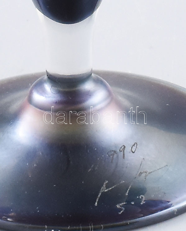 1990 feltehetően francia üvegművész: Fémlüszteres talpas üveg kínáló. ...